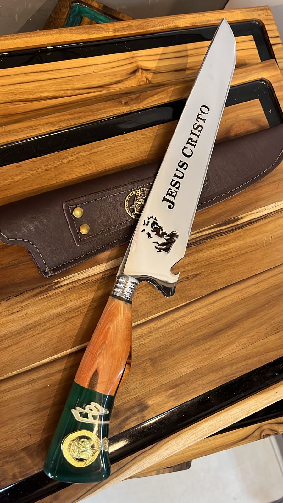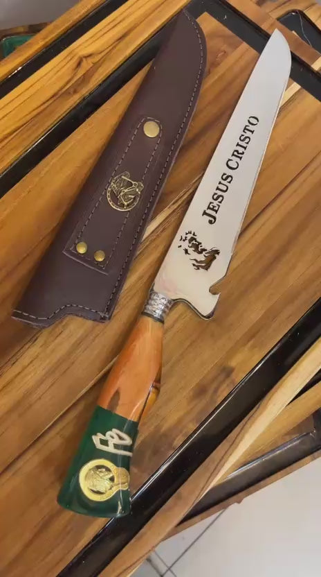 Faca Profissional Exclusiva Jesus Cristo 8" – Aço Inox 304 Premium + Bainha - 35cm (20 cm de Lâmina)