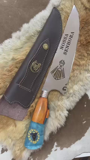 Faca Profissional Exclusiva Nossa Senhora Aparecida 8" – Aço Inox 420 Premium + Bainha - 35cm (20 cm de Lâmina)