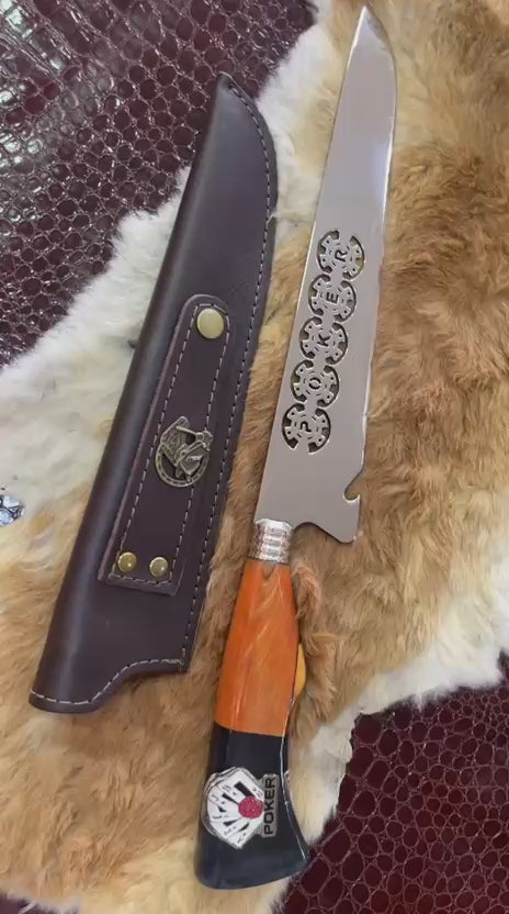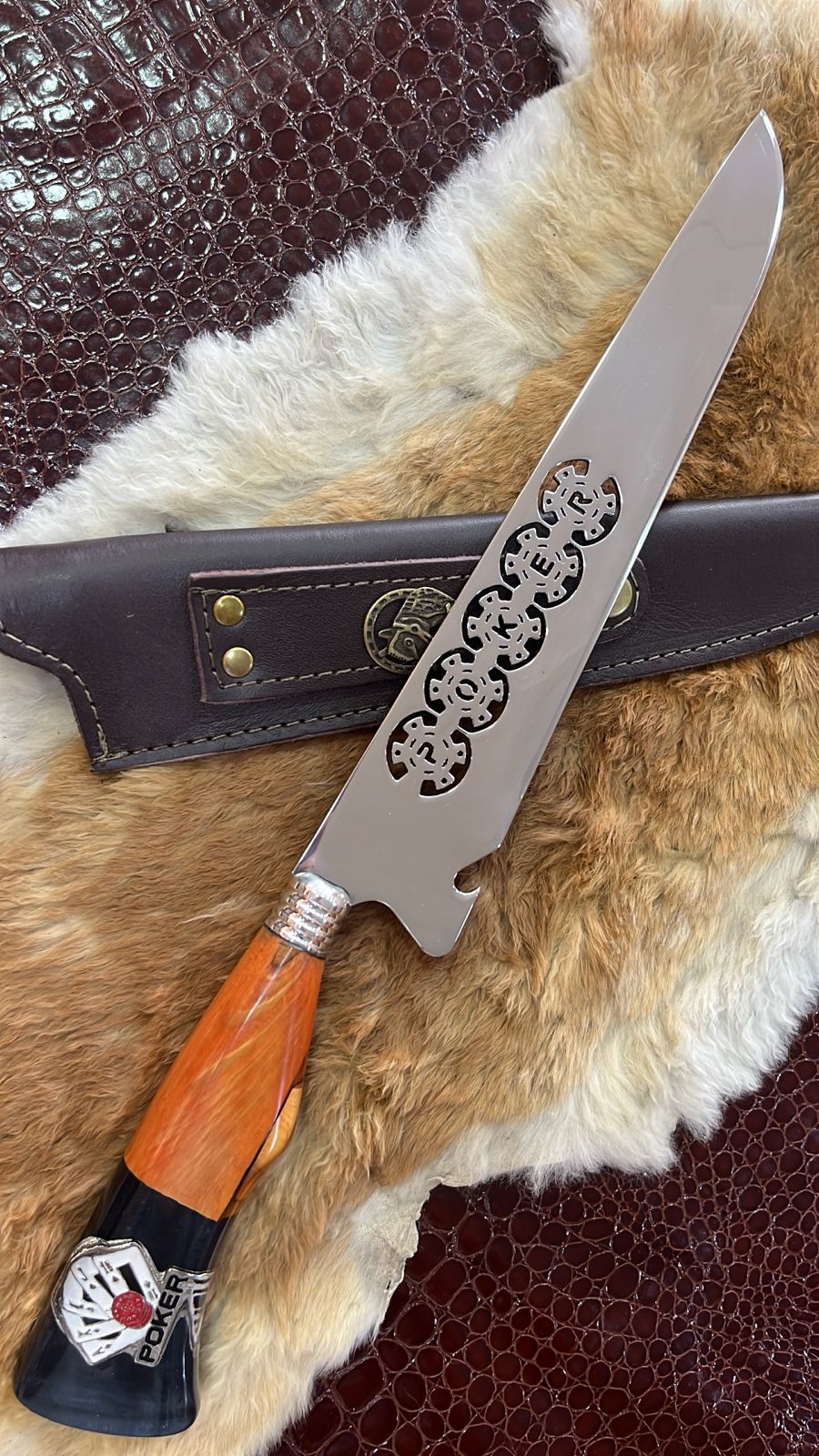 Faca Profissional Exclusiva Poker 8" – Aço Inox 420 Premium + Bainha - 35cm (20 cm de Lâmina)